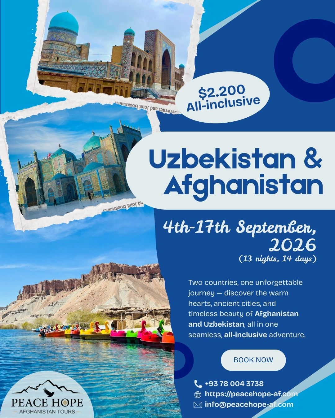 This fully guided, all-inclusive journey is carefully organised by Peace Hope Afghanistan Tours ποΈ, with experienced local guides, smooth logistics, and safety as a priority β so you can travel with confidence, comfort, and real cultural connection π€