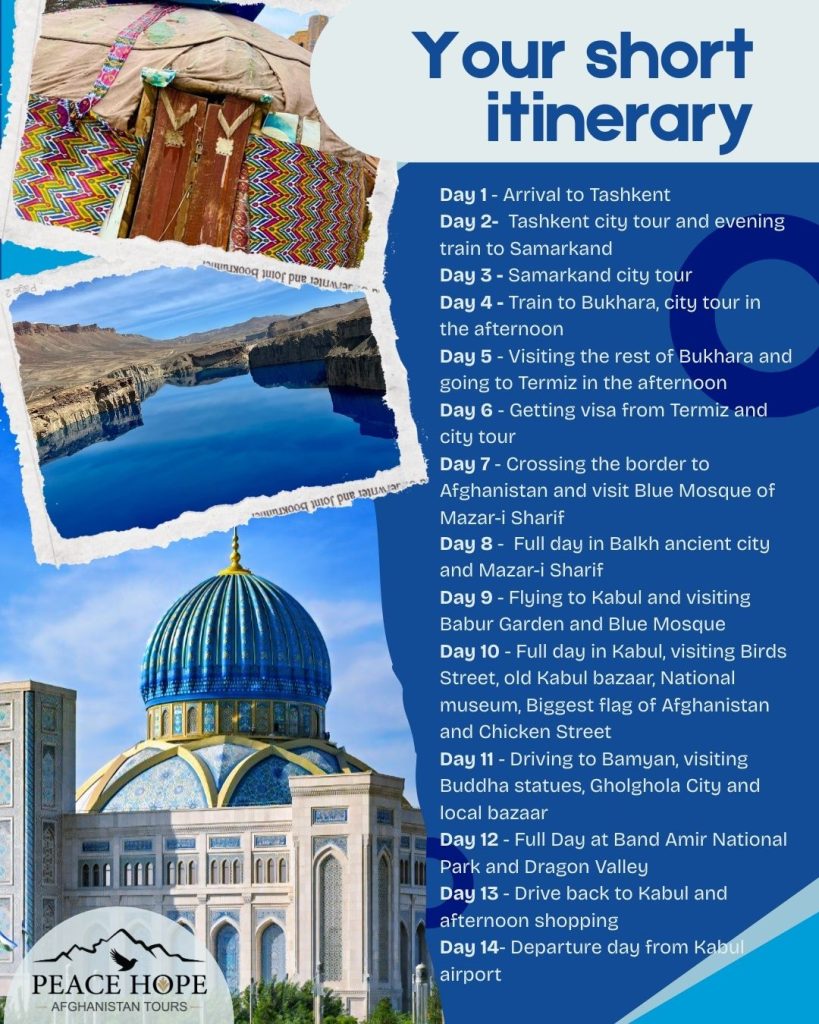 Walk through Samarkandβs legendary squares, explore Bukharaβs old streets, and feel the crossroads spirit of Termezβ¦ then cross into Afghanistan to see the Blue Mosque of Mazar-i-Sharif, the ancient city of Balkh, Kabulβs bustling bazaars, and the breathtaking landscapes of Bamyan and Band-e Amir National Park ποΈπ Every day offers a new layer of culture, history, and scenery.